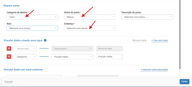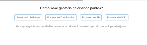 Localização → selecione a coluna de endereço ou coordenadas, conforme o método escolhido