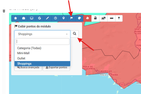Acesse o ícone de bandeira na barra de ferramentas do mapa.