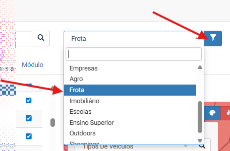 Na aba de Módulos, selecione Frota.