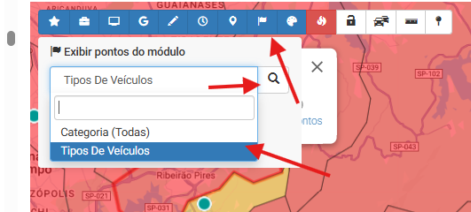 Como visualizar os tipos de veículos no mapa