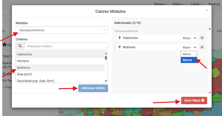 Clique na opção “Mapa de Calor Multicritério” para abrir o menu.