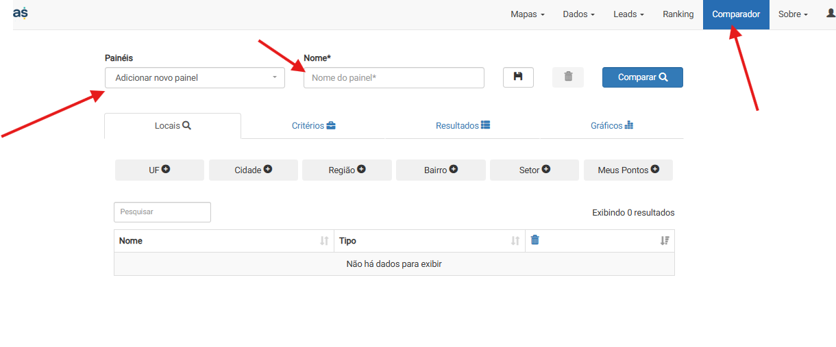 Na aba "critérios" escolha um ou mais critérios de comparação