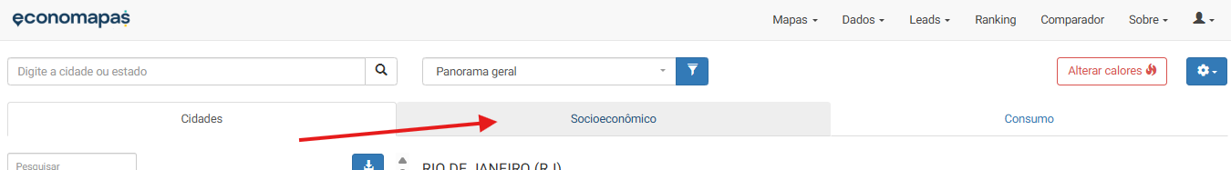 A aba Socioeconômica oferece informações essenciais para investigar uma determinada área, incluindo: